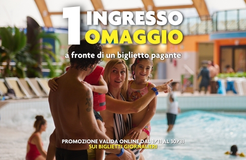 Promozione valida sui biglietti giornalieri per le date dal 1° al 30 novembre 2025 acquistabili esclusivamente su www.acquaworld.it nella sezione dedicata e fino ad esaurimento. L'offerta non è cumulabile con altre promozioni in corso o svolte da partner.  I biglietti seguono le regole presenti nel Regolamento Parco e sono fino ad esaurimento. Ti ricordiamo che il biglietto pagante e quello omaggio vanno utilizzati contestualmente.