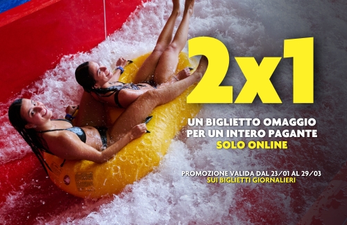Esatto hai capito bene: entrate in 2 pagando solo 1 biglietto. Affrettati, la promo è valida SOLO ONLINE sui biglietti giornalieri.